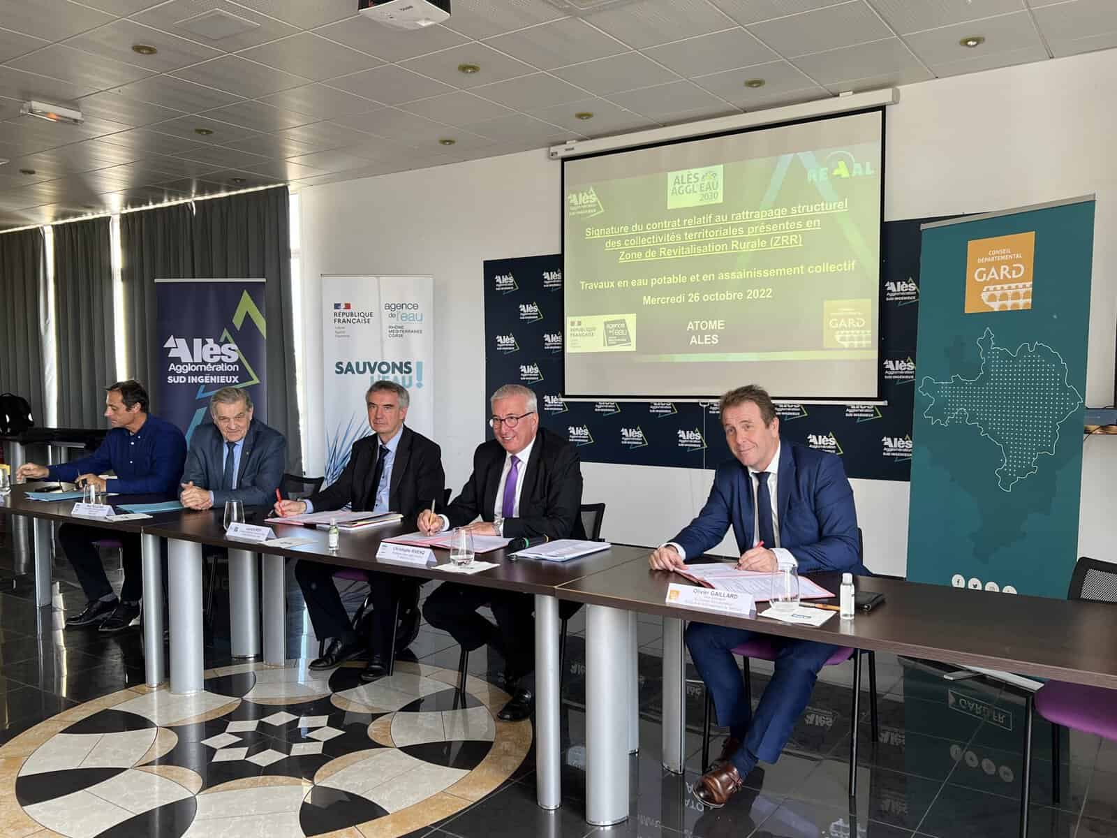 Le Conseil départemental du Gard et l’Agence de l’Eau Rhône Méditerranée Corse vont participer au financement des travaux. Aujourd’hui, Christophe Rivenq -Président d’Alès Agglomération-, Max Roustan -Maire d’Alès-, Laurent Roy -Directeur de l’Agence de l’Eau, Olivier Gaillard -Vice Président du Conseil départemental du Gard et Eric Toreilles, Vice-Président d’Alès Agglo, ont signé un contrat fixant les modalités des travaux.