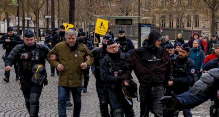 La veille à Paris, une action a été menée par la Confédération paysanne au ministère de l’Agriculture, à la Direction générale de la performance économique. Cinquante militants de la Confédération paysanne ont été interpellés et placés en garde à vue, après avoir pénétré dans une annexe du ministère de l’Agriculture à Paris, rapporte la préfecture de police de Paris à franceinfo. Parmi les 52 personnes interpellées, figure notamment un éleveur de chèvres audois, toujours placé en garde à vue au moment du rassemblement. Selon le syndicat d’agriculteurs, « trois porte-parole nationaux » sont également concernés.