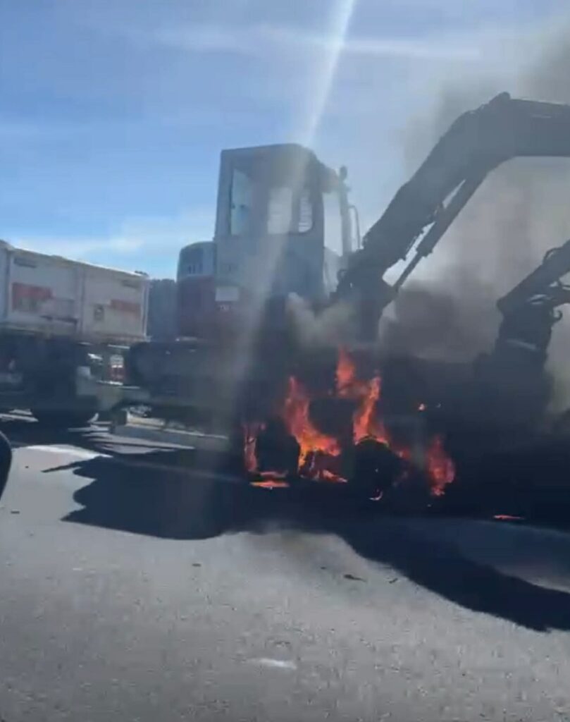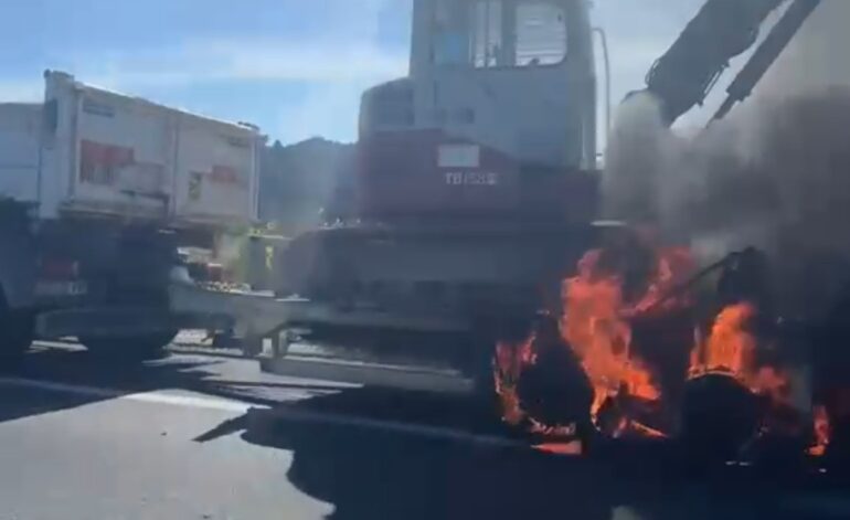 Un véhicule est en feu sur l’autoroute A9, ce vendredi 17 avril, aux alentours de 16h, en direction de Barcelone, entre Narbonne et Perpignan, au point kilométrique 213, 6km après Sigean. Le trafic n’est pas loin d’être interrompu. Un camion qui tracte un engin de chantier a pris feu, plus précisément sa remorque. Prudence si vous êtes dans le secteur, la zone n’est pas encore sécurisée, les forces de l’ordre sont sur place. Vinci autoroutes indique de bien se décaler sur la voie la plus à gauche, le feu n’est pas maîtrisé.