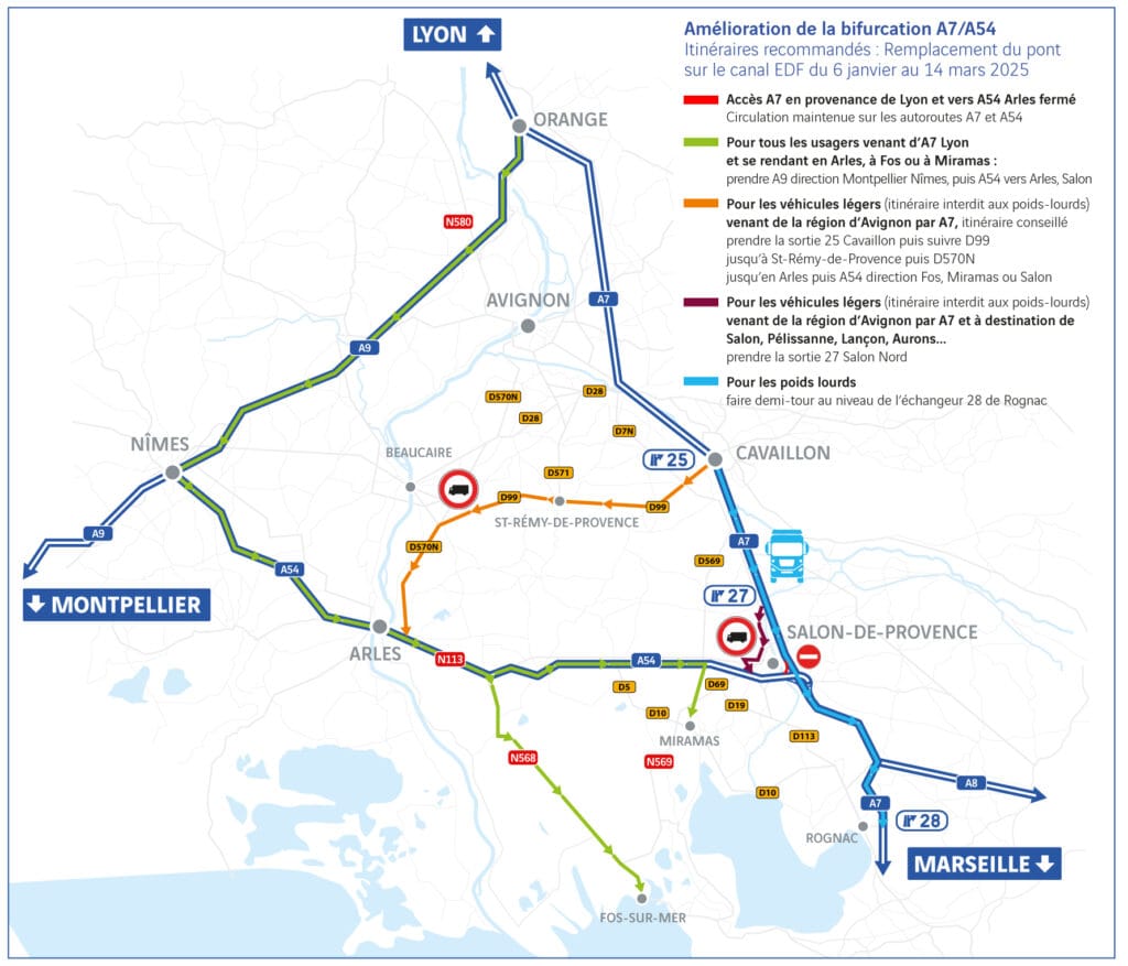 Dès 21 heures, la bretelle A9 en provenance de l’Espagne vers l’A61, en direction de Toulouse sera fermée, en raison de travaux d’amélioration de la bifurcation entre les deux autoroutes, entrepris par Vinci Autoroutes.