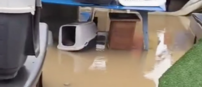 © Capture vidéo. Béziers : inondé, le refuge des Chats libres appelle à l’aide.