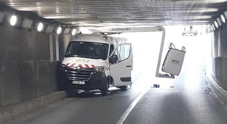 Béziers : un camion nacelle s’encastre dans un tunnel