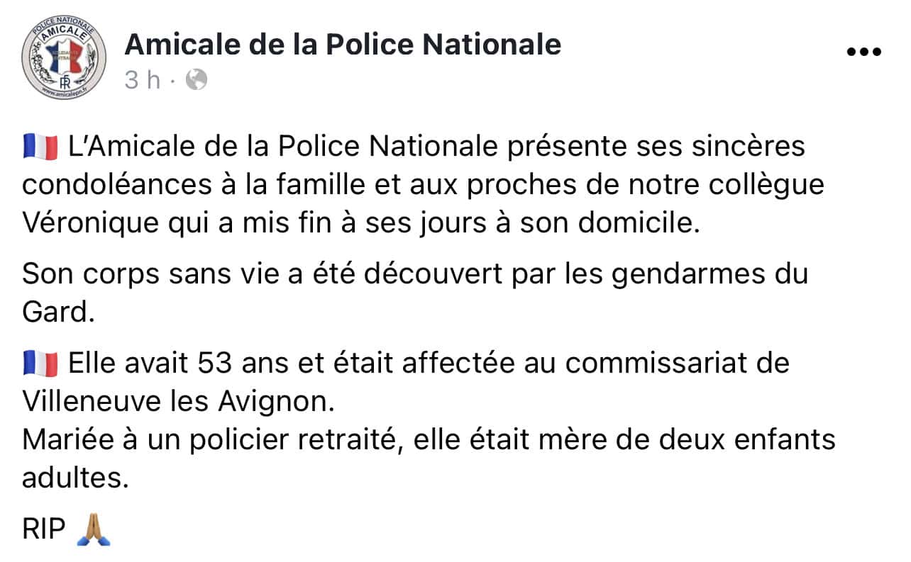 C’est par un communiqué de l’Amicale de Police Nationale que nous apprenons la triste nouvelle. Le corps sans vie de la fonctionnaire a été découvert ce vendredi 21 octobre 2022 dans une commune située à quelques kilomètres de Bagnols-sur-Cèze, dans le Gard. Ce sont les proches de la policière qui ont alerté les secours. La policière de 53 ans était affectée au commissariat de Villeneuve-lès-Avignon, dans le Gard.