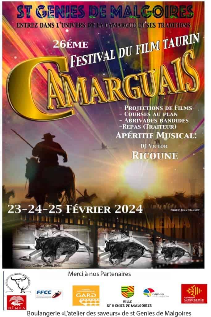 L’événement taurin du début d’année le plus connu de la région approche ! Le 26ème Festival du Film Taurin et Camarguais aura lieu les vendredi 23, samedi 24 et dimanche 25 février. Ce week-end festif et taurin se déroule dans la commune de Saint-Geniès-de-Malgoirès, entre Nîmes et Alès, dans le Gard, en Occitanie !