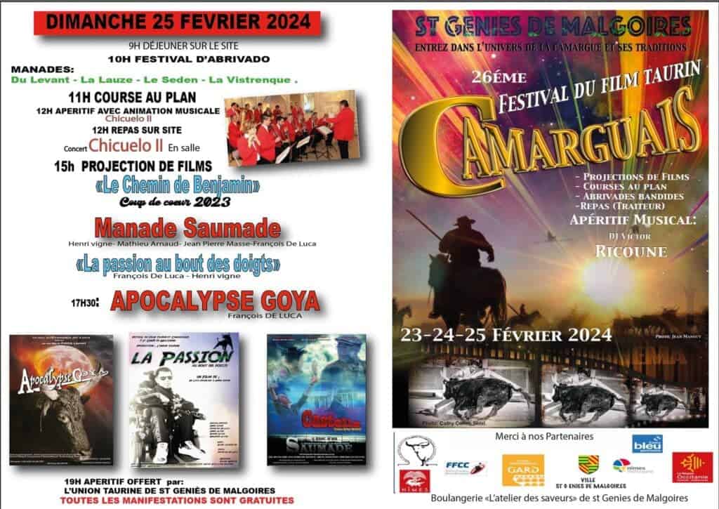 Voici ci-dessous le programme du 26ème Festival du Film Taurin et Camarguais édition 2024 à Saint-Geniès-de-Malgoirès.