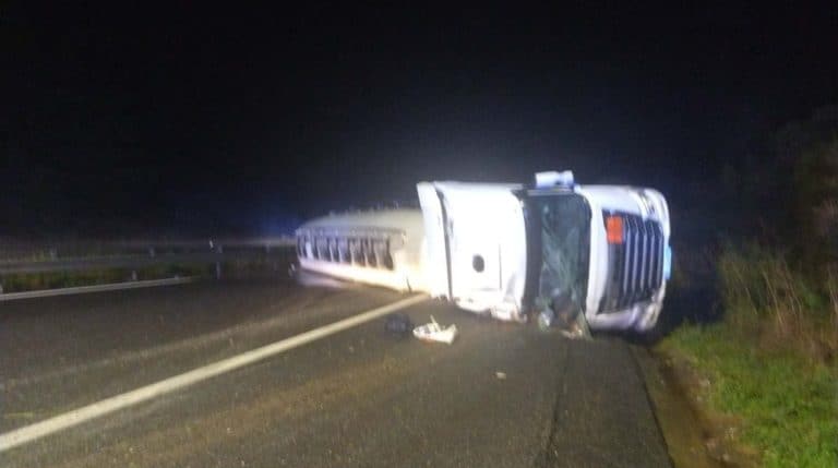 La circulation sur l’A54 coupée à cause d’un camion citerne couché