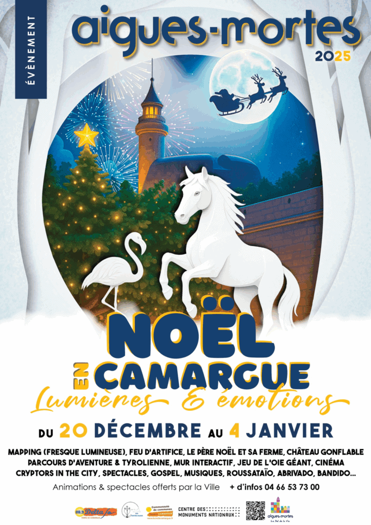 Du samedi 20 décembre au dimanche 4 janvier 2026, Aigues-Mortes (Gard) se pare de lumières et célèbre les fêtes de fin d’année. Pendant plusieurs jours, la cité médiévale s’anime et propose un programme mêlant spectacles, traditions locales, féérie hivernale, animations pour enfants et moments de partage dans une ambiance chaleureuse.