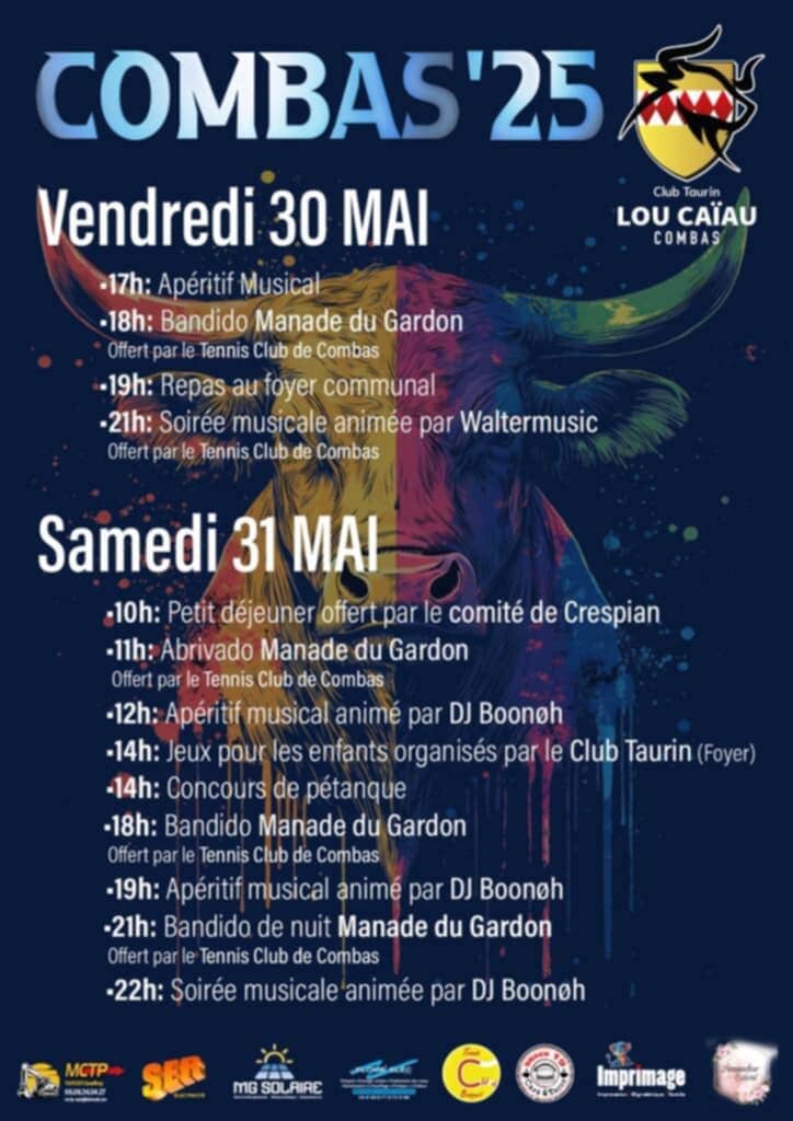 Pour la suite ? « On pense à organiser une journée Revivre… On a pas mal de projets en tête, des soirées à thème, des brocantes, des marchés, on va établir un planning », conclut la vice-présidente avec enthousiasme. Combas est à l’aube d’une nouvelle ère... Le club taurin de Combas Lou Caiau est présent sur Instagram : cliquez ici et sur Facebook cliquez ici. Contact : ctloucaiau@gmail.com. Le programme complet à découvrir ci-après :