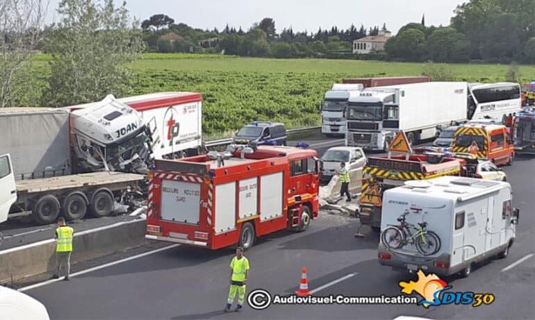Les sapeurs-pompiers du Gard interviennent ce vendredi 1er août, pour un accident sur l’autoroute A9 (Point kilométrique 57 – deux sens), au niveau de la commune de Milhaud impliquant un poids lourd transportant du bois, couché sur les voies dans le sens Montpellier-Orange. Un suraccident impliquant une voiture seule a eu lieu sur l’autre sens au même niveau. Aucun blessé n’est à déploré.