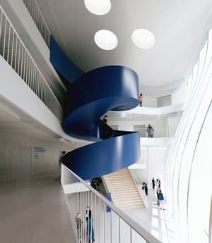 Dans la perspective de ce fameux « kiss » (le nom donné au rapprochement des deux bâtiments au sommet) souhaité par les cabinets d’architectes Chabanne et 3XN, une passerelle dissimulée par le verre complète l’écriture d’un « H ».