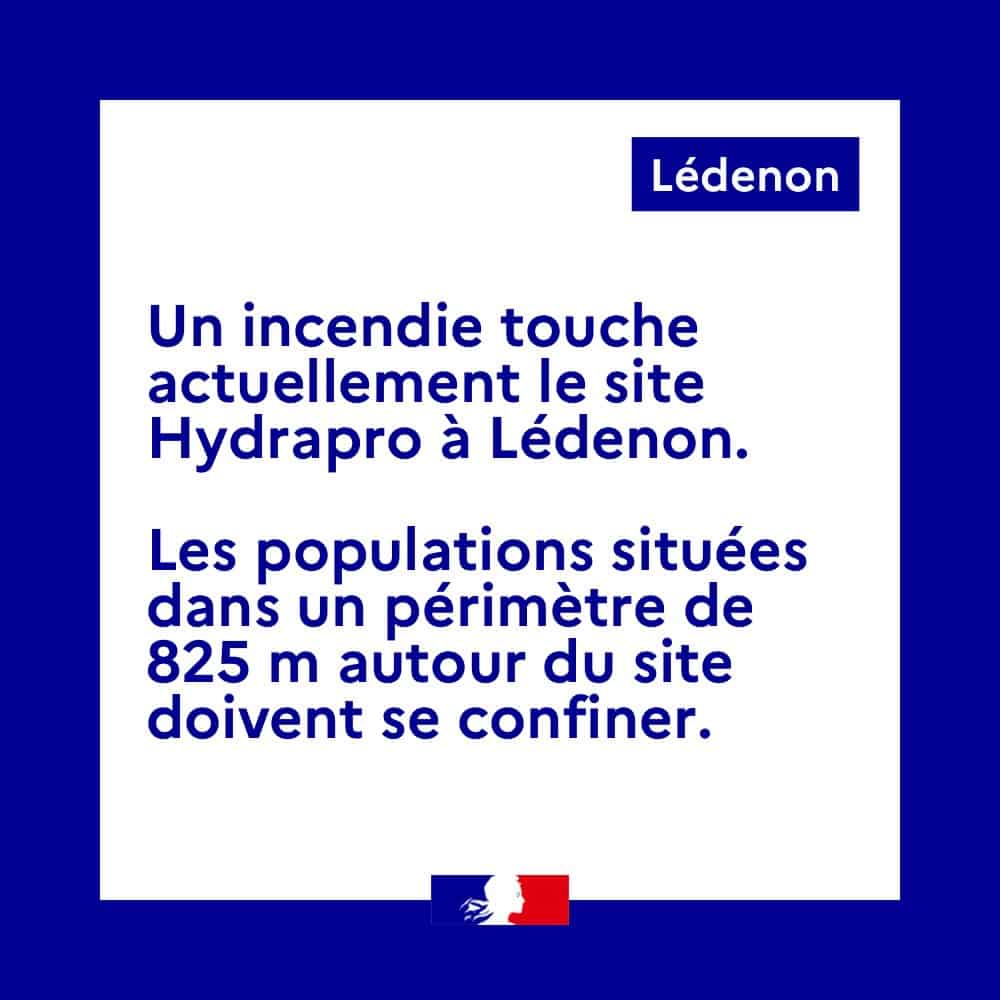 Le plan particulier d’intervention a été déclenché pour appliquer des mesures de protection de la population dans le périmètre de 825 m du PPI autour du site et des mesures de sécurisation de l’entreprise. Les personnes se trouvant dans le périmètre du PPI doivent se confiner. Cela concerne des habitations des communes de Meynes et de Lédenon, indique le Préfet du Gard.