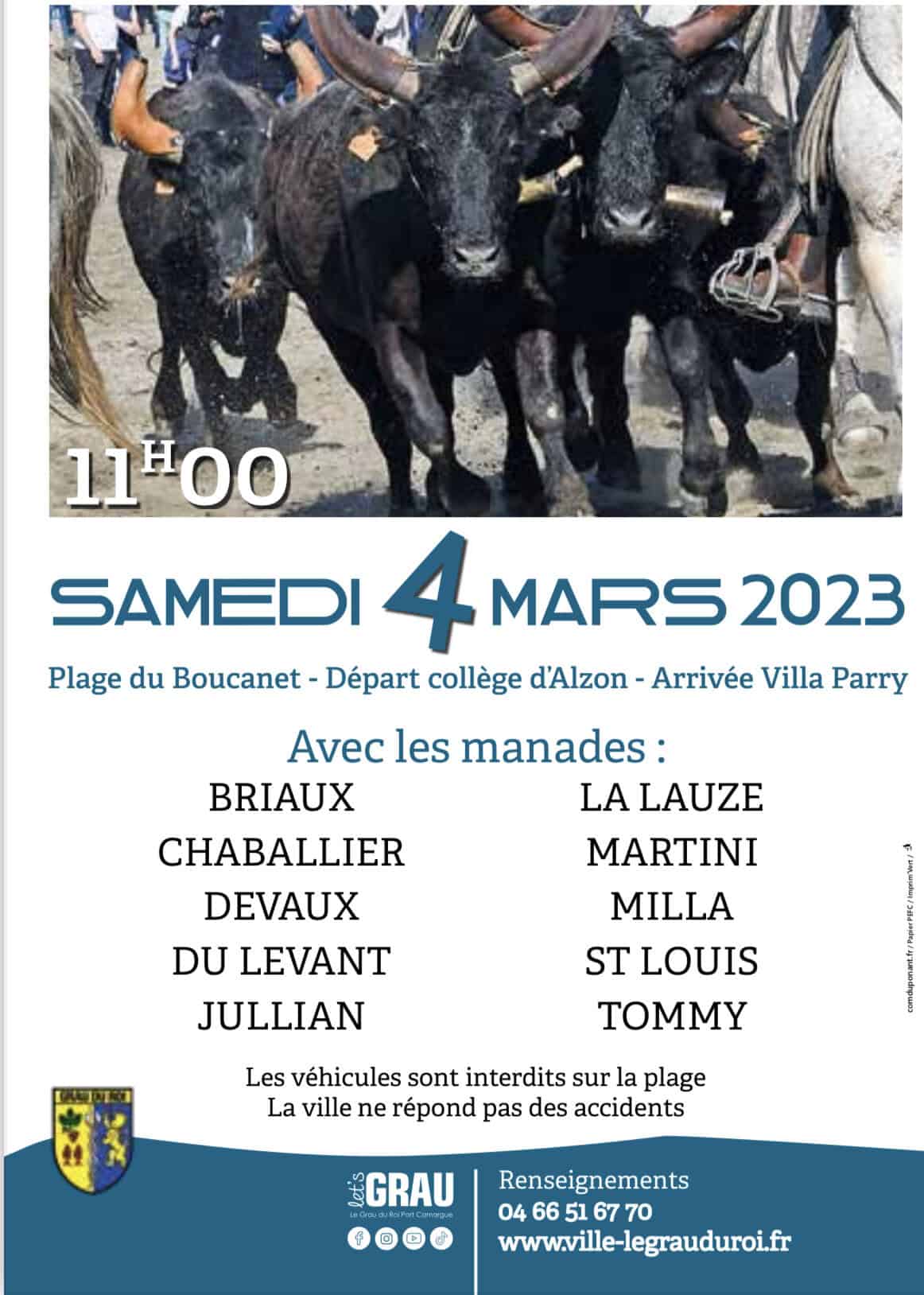 Amoureux de la Camargue, de la bouvine et des traditions camarguaises, ce rendez-vous est pour vous. Comme chaque année, l’Abrivado des plages va rassembler des milliers de personnes au Grau-du-Roi dans le Gard. Ce samedi 4 mars 2023 aura lieu la 26ème édition !