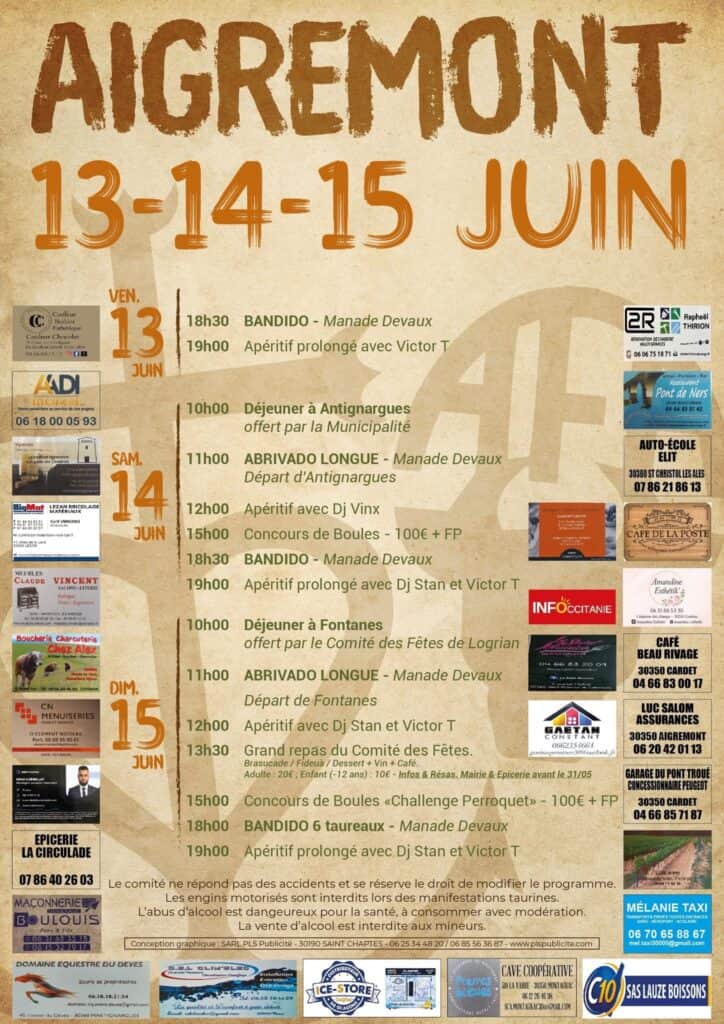 La petite commune paisible d’Aigremont dans le Gard est en fête ce week-end. Le Comité des Fêtes, présidé par Loïc Saval, prépare depuis plusieurs jours les installations. La fête votive se déroule de ce vendredi 13 juin au dimanche 15 juin inclus. Au programme, de nombreuses manifestations taurines, avec des abrivados longues. Toutefois, le Comité des fêtes précise que les véhicules motorisés sont interdits durant ces manifestations. Coté musique, vous pourrez compter sur le duo DJ STAN / VICTOR T pour vous ambiancer, ainsi que sur DJ VINX le samedi midi. Pour les amateurs ou professionnels de pétanque : concours de boule au programme ! Un grand repas se déroulera le dimanche en début d’après-midi.