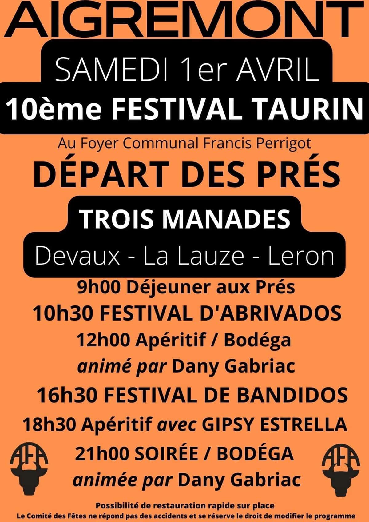 Le programme du festival taurin le samedi 1er avril 2023 à Aigremont