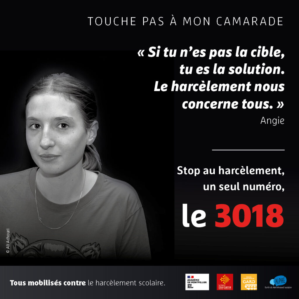 9 portraits tirés de l’exposition Touche pas à mon camarade sont affichés dans les cars et dans les collèges. Ils seront exposés sur 15 cars de 5 lignes du réseau de transports liO Occitanie (114 Nîmes-Alès, 115 Avignon-Alès, 130 Arles-Nîmes, 132 Le Grau-du-Roi-Nîmes, 141 Sommières-Nîmes). « Face au fléau du harcèlement scolaire et à ses répercussions souvent durables sur la santé mentale des jeunes, il est de notre responsabilité de protéger les élèves et d’accompagner les parents et les équipes pédagogiques », déclare Carole Delga, Présidente de la Région Occitanie. « Le harcèlement scolaire est l’affaire de toutes et tous, car ce fléau frappe nos enfants, nos petits-enfants sans distinction de genre ni d’origine sociale ou géographique. Et il faut apporter des solutions à la victime de harcèlement, pour qu’elle se dise : » Je ne suis pas seul(e), je peux en parler à quelqu’un qui m’écoutera et m’aidera » », commente Françoise Laurent-Perrigot, présidente du Conseil départemental du Gard.