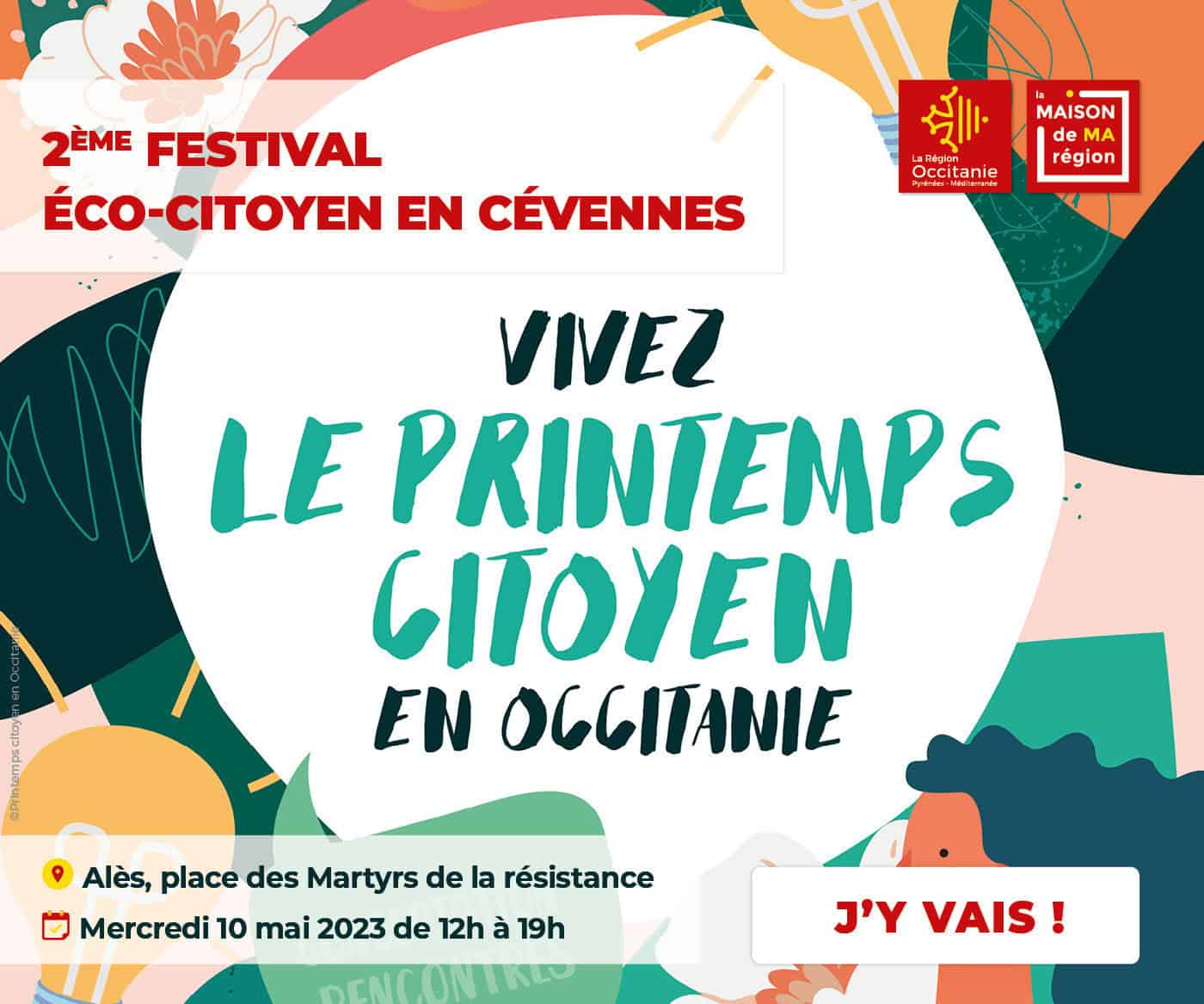 La deuxième édition du Festival Éco–Citoyen en Cévennes approche ! Elle aura lieu cette année le mercredi 10 mai 2023, à Alès dans le Gard, en Occitanie. Une très belle programmation a été préparée par les équipes de la Maison de ma Région d’Alès.