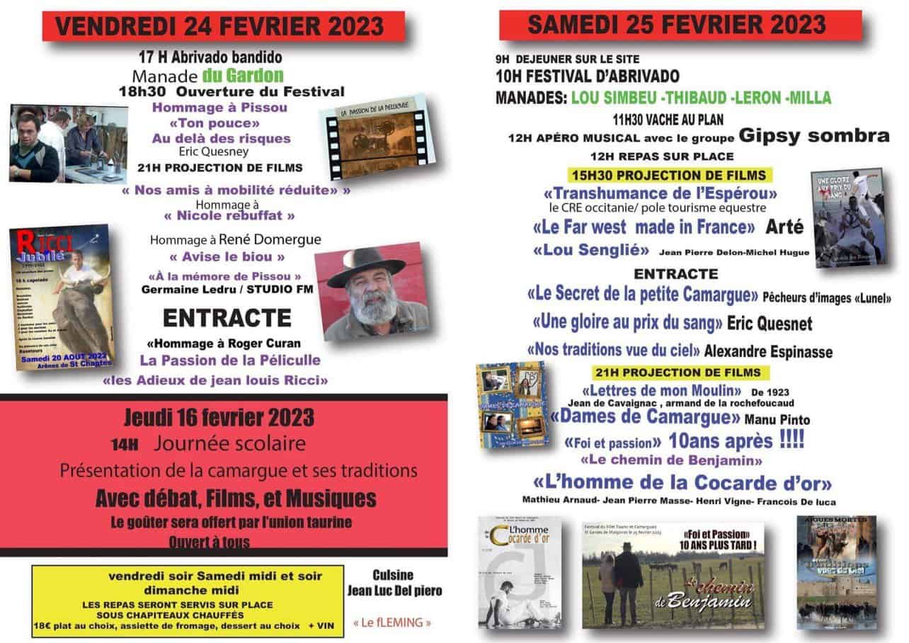 Programme du 25ème Festival du film taurin et camarguais 2023