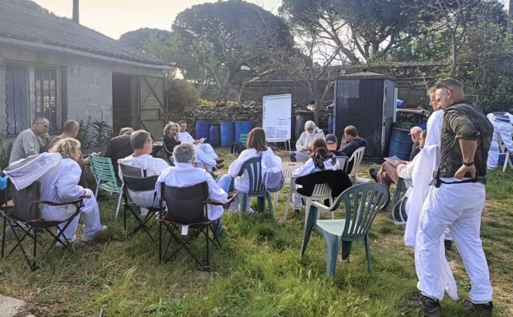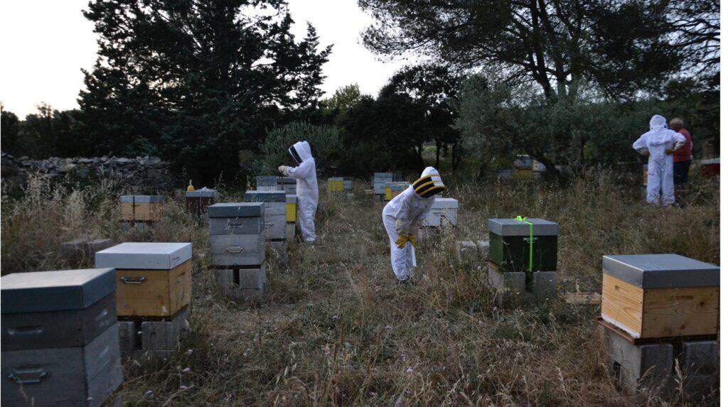 Le rucher école du syndicat apicole du Gard, à Nîmes, accueille chaque année une vingtaine de stagiaires, venus de tout le département. Qu’ils soient novices curieux, jardiniers passionnés ou futurs professionnels, tous partagent un même objectif. Celui d’pprendre à bien s’occuper des abeilles, dans le respect de la biodiversité et des bonnes pratiques apicoles. De février à septembre, les stagiaires alternent cours théoriques (anatomie de l’abeille, législation, conduite d’un rucher…) et cours pratiques en plein air.