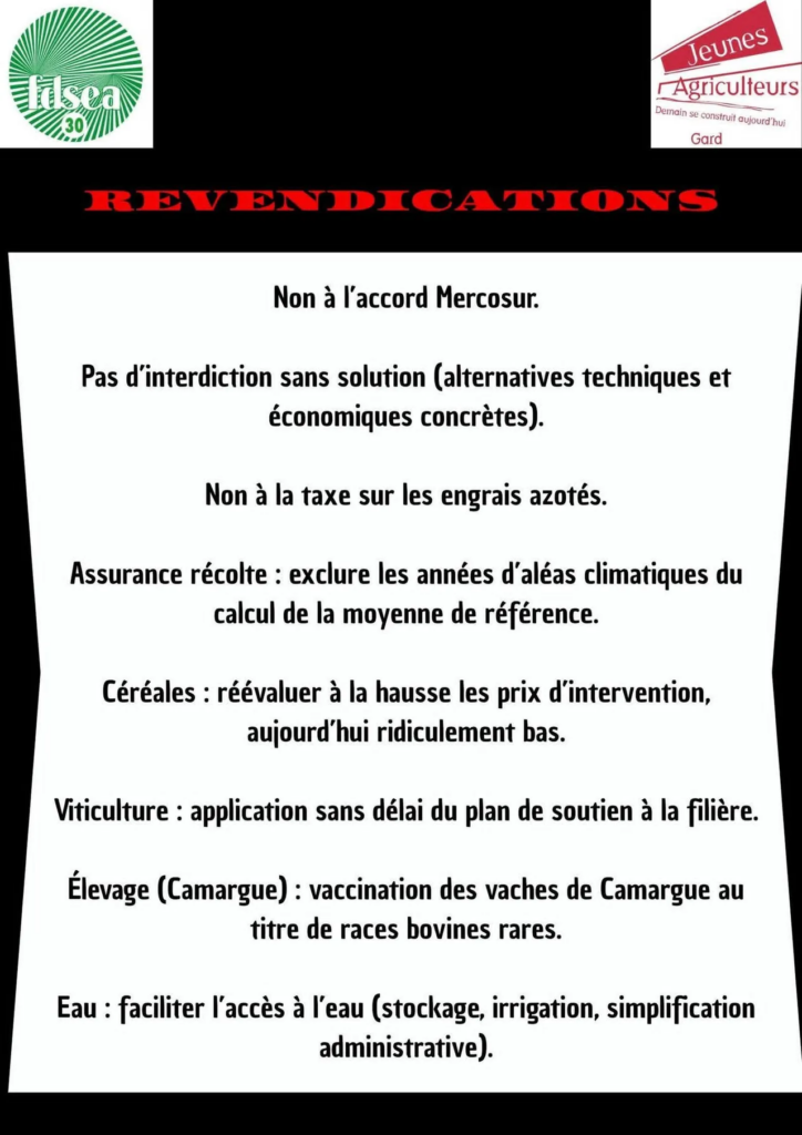 La mobilisation du secteur agricole ne cesse de croitre. Après les quelques opérations à Vauvert, Aimargues et Vendargues (Hérault) ce lundi, une mobilisation est attendue demain, soit mardi. La FDSEA et les Jeunes agriculteurs du Gard appellent en effet à bloquer les entrées d’autoroutes du département, dans le cadre d’un vaste mouvement de « Lyon jusqu’en Espagne ». Parmi leurs revendications : la dénonciation du Mercosur, le soutien à la filière viticole, la vaccination des vaches de race Camargue ou encore la refonte de l’assurance récolte. Les blocages devraient avoir lieu à Gallargues, Nîmes Ouest, Nîmes Centre et Nîmes Est, à partir de 4h, dans la nuit de ce lundi à mardi.