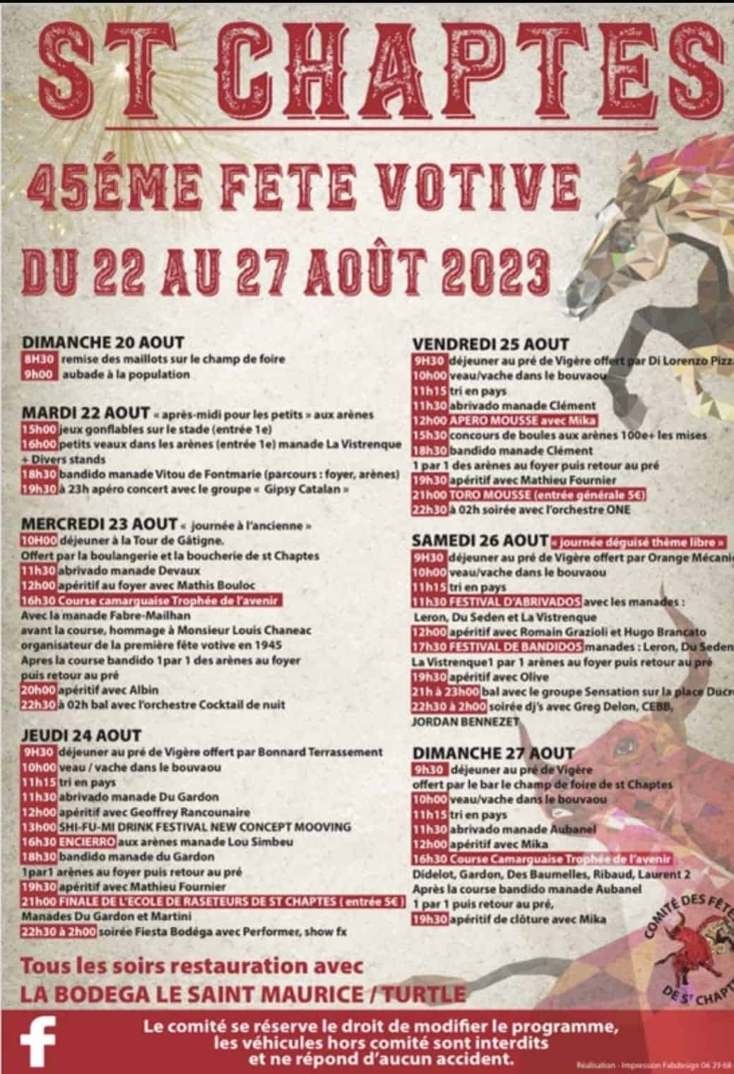 >> Vous pouvez retrouver les dernières informations sur la page Facebook du Comité des Fêtes de Saint-Chaptes ICI.