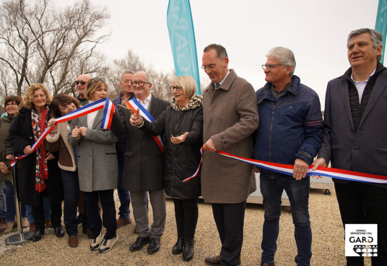 Vendredi 13 février dernier avait lieu la mise en service du nouveau tronçon de la ViaRhôna entre Saint‑Gilles et Vauvert, en présence de Françoise Laurent‑Perrigot, présidente du Conseil départemental du Gard, des conseillers départementaux du canton de Vauvert, du Conseiller départemental du canton de Saint‑Gilles, maire de Saint-Gilles, de la conseillère départementale du canton de Saint-Gilles, du président de la Communauté de communes de Petite Camargue, des maires de Beauvoisin et de Vauvert et du représentant des voies navigable de France.