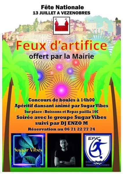 - 22h30 – Feu d’artifice Tiré vers le stade Rancel