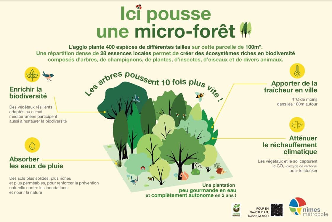 À ce jour, Nîmes Métropole a déjà planté 12 micro-forêts (CHU de Nîmes, Présence 30, Phytocontrol, ZAE de Grézan, UDAF 30, SARP Somes, Pertuis Froid, Colas, Mas Merlet, CA 30, DB Schhenker, ITEP Grézan), impliquant 630 salariés qui ont participé et sensibilisé à cette initiative. Ce projet s’inscrit dans le cadre d’un atlas de la biodiversité intercommunale, co-financé par l’Office français de la biodiversité (OFB), visant à mieux connaître la variété et la diversité du « monde vivant » du territoire. Les entreprises partenaires ne se contentent pas de planter des arbres. Elles sont également invitées à intégrer ces enjeux environnementaux dans leurs activités quotidiennes et à sensibiliser leurs employés. Des ateliers tels que la « Fresque du climat » sont organisés et animés par les membres de l’association « Soignons les hommes, soignons la terre » , en plus de la plantation de la micro-forêt, transformant ainsi cette initiative en un véritable chantier participatif.
