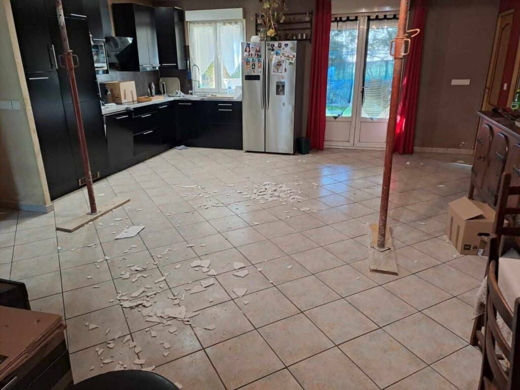 Le 13 novembre dernier, Marie-Josée Brunet fait sa vaisselle dans la cuisine, à Garrigues-Sainte-Eulalie, dans le Gard. Aux alentours de 13h, une énorme déflagration retentit. « On est tout de suite sortis pour voir ce qu’il se passait, on n’a rien vu », commente-t-elle. La fille de la famille voisine se met, quant à elle, à pleurer, tant le bruit est assourdissant. Plus d’une semaine après, c’est le choc. « Des fissures sont apparues sur les plafonds, puis les murs extérieurs. Le toit a commencé à s’affaisser », raconte Marie-Josée encore sous le choc. La maison voisine est également touchée, « c’est même pire pour eux », narre notre interlocutrice.
