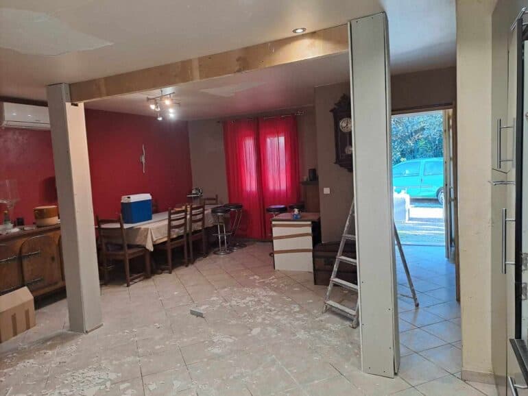 Le 13 novembre dernier, Marie-Josée Brunet fait sa vaisselle dans la cuisine, à Garrigues-Sainte-Eulalie, dans le Gard. Aux alentours de 13h, une énorme déflagration retentit. « On est tout de suite sortis pour voir ce qu’il se passait, on n’a rien vu », commente-t-elle. La fille de la famille voisine se met, quant à elle, à pleurer, tant le bruit est assourdissant. Plus d’une semaine après, c’est le choc. « Des fissures sont apparues sur les plafonds, puis les murs extérieurs. Le toit a commencé à s’affaisser », raconte Marie-Josée encore sous le choc. La maison voisine est également touchée, « c’est même pire pour eux », narre notre interlocutrice.