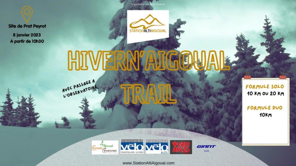 La première édition de l’Hivern’Aigoual Trail se déroule ce dimanche 8 janvier 2023 au Mont-Aigoual dans le Gard. Malheureusement, elle se fera sans neige. Deux formules sont proposées. L’une en solo de 10 ou 20 km et l’autre en duo de 10 km. Avec option tartiflette à l’arrivée pour garantir malgré tout une ambiance montagne ! Le départ et l’arrivée s’effectueront depuis le site de Prat-Peyrot, l’unique station de ski dans le Gard.