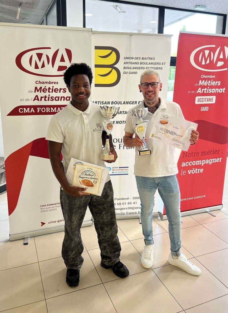 La boulangerie Bouzanquet, installée rue Séguier, à Nîmes, réalise un doublet. Guillaume Spileers a remporté le concours départemental de la meilleure fougasse d’Aigues-Mortes. Son collège de travail, Saïd Absein, 20 ans, en apprentissage chez Bouzanquet, a quant à lui obtenu le prix de la meilleure fougasse aux gratons. Enfin, Pierre Roussel, du Pétrin Nîmois, a remporté le concours du meilleur flan. Les résultats complets des podiums, cliquez ici.