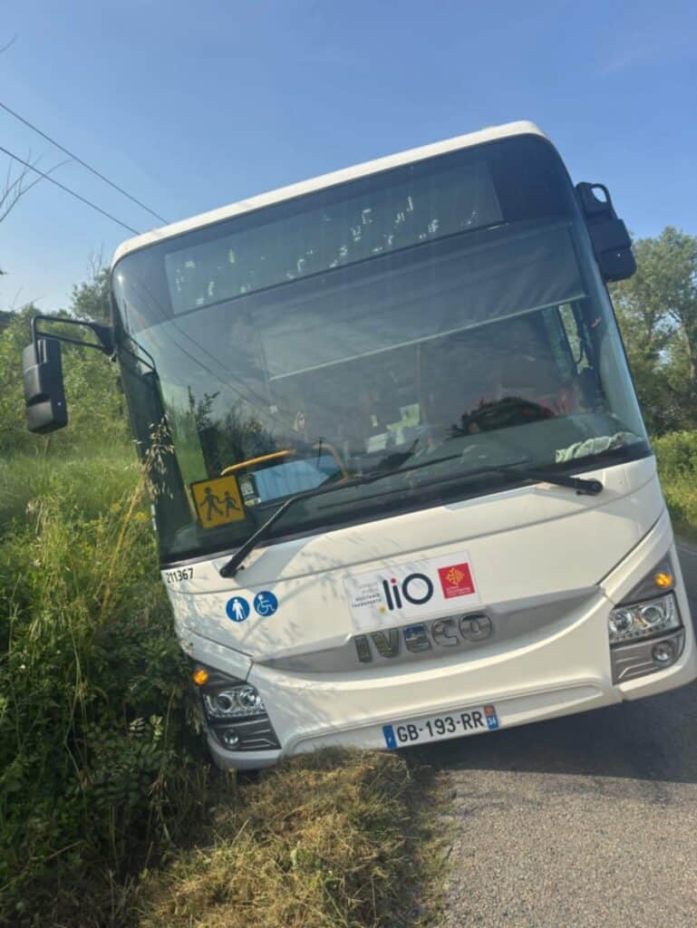 Gard : un bus scolaire dans le fossé, la route barrée à Moulézan. DR