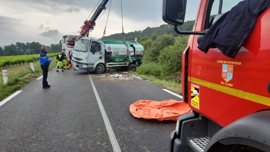 Gard : un accident de poids lourd sur la D6110 à Moulézan ce matin