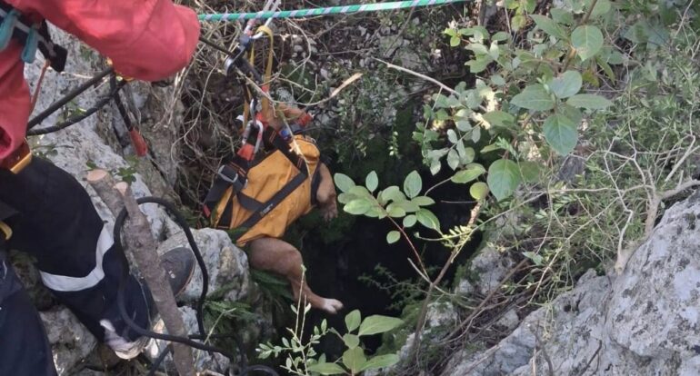 Les sapeurs-pompiers du Gard sont intervenus à Corconne (bois des Rabassières), le jeudi 29 janvier, vers 10h00, pour un chien de chasse tombé dans un trou d’environ 25 mètres. L’équipe spécialisée de sauvetage en milieu périlleux a été engagée. Ils ont remonté le chien vivant auprès de son maitre et d’un vétérinaire et ont même pu immortaliser cette intervention réussie :