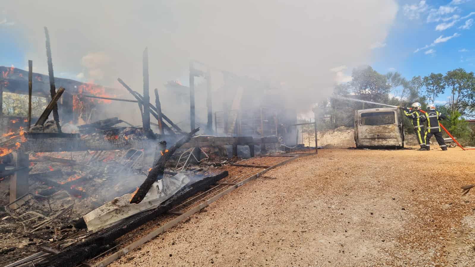 L’action des sapeurs pompiers avec 2 lances incendies a permis de protéger un second batiment à proximité. Il n’y a pas eu de blessés. L’intervention était toujours en cours à 17h. La Gendarmerie est sur place.
