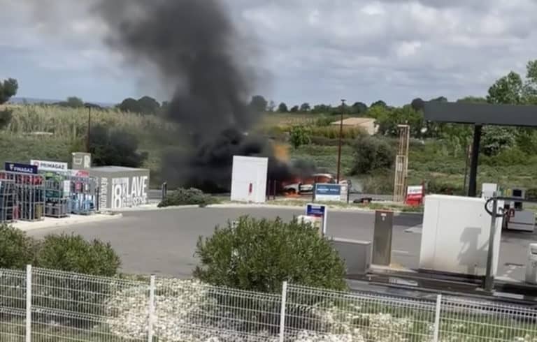 Depuis 13h30, les sapeurspompiers du Gard interviennent pour un feu de véhicule à proximité d’un centre commercial et d’une station-service.