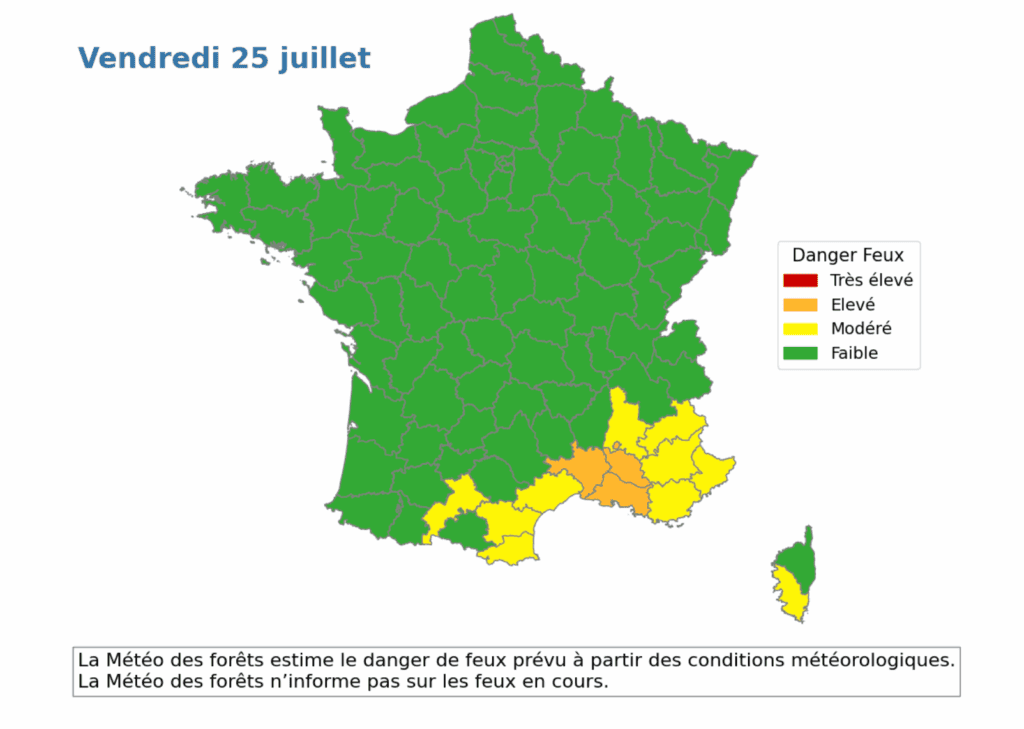 Par ailleurs, une zone est en risque incendies très sévère (rouge), il s’agit de la zone Costières- Petite Camargue, ce vendredi 25 juillet. Voici les communes concernées : Aigues-Mortes, Aimargues, Beauvoisin, Générac, Le Cailar, Le Grau du Roi, Saint Gilles, Saint Laurent d’Aigouze, Vauvert