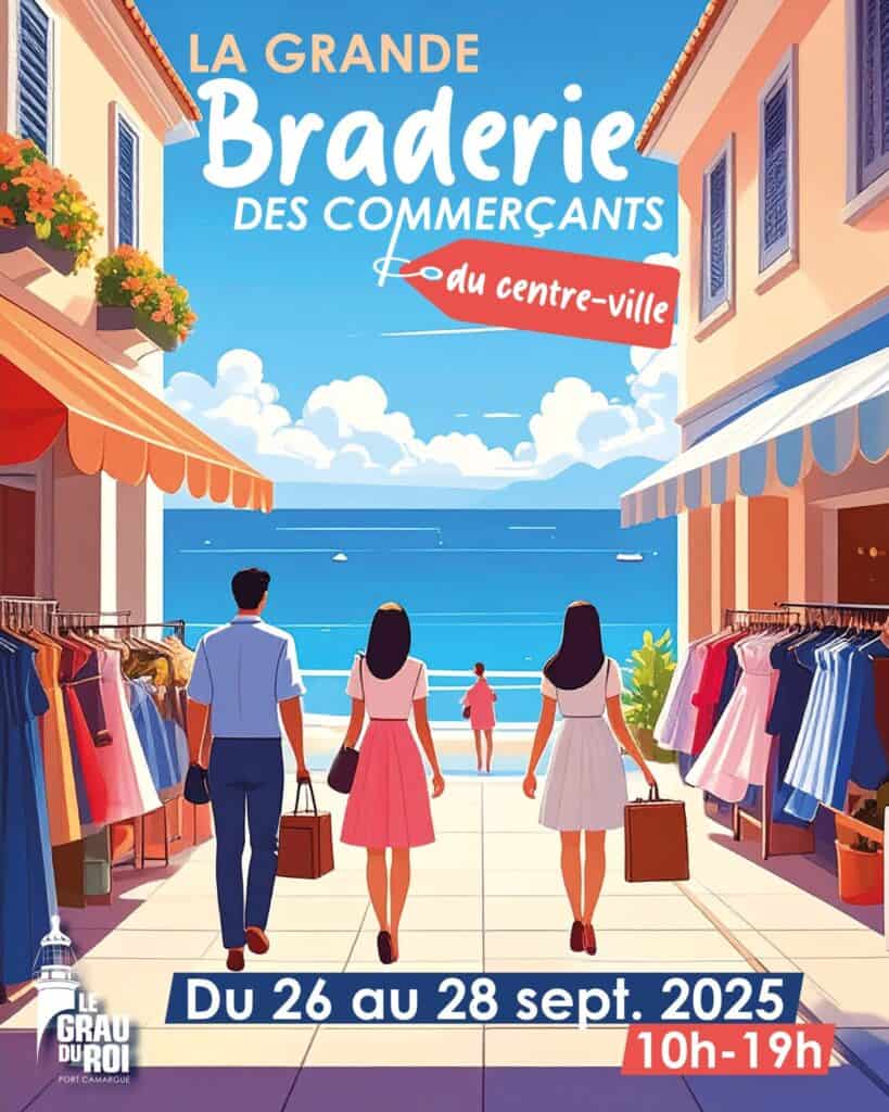 Pour clore la saison estivale, la traditionnelle braderie des commerçants du centre-ville se tiendra du 26 au 28 septembre, de 10h à 19h, au Grau du Roi. L’occasion de faire de bonnes affaires et de flâner dans les rues animées du Grau… Le parking Fanfonne-Guillierme, à proximité du cœur de ville, restera gratuit durant ce weekend. Un parking temporaire gratuit à 400 mètres du centre-ville est à disposition du public, avenue Georges-Pompidou (face à la résidence hôtelière Mayflower).