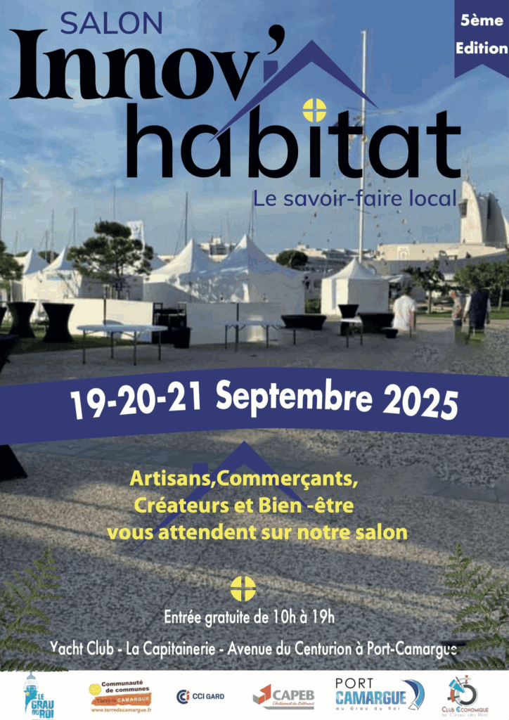 Organisé par le Club Economique Le Grau du Roi, le salon Innov’Habitat met en avant le savoir-faire local et permet de faire découvrir les tendances de l’habitat et du design, d’échanger directement avec les professionnels locaux mais également de participer à des ateliers… « Venez à la rencontre de plus de 70 exposants passionnés ! », commente le maire de la commune, Robert Crauste. L’entrée est gratuite, plus d’informations, cliquez ici.