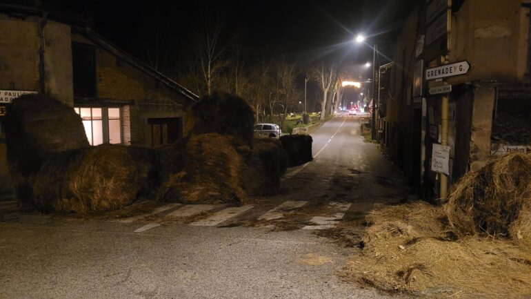 Les agriculteurs ont déposés de nombreuses bottes de pailles sur la chaussée, bloquant ainsi l’accès à plusieurs axes de circulation. La commune Montaigut-sur-Save a assuré cette nuit que « la voie sera normalement totalement dégagée dans quelques heures par la DDT. » Une partie de la route avait déjà été dégagée « grâce à quelques bonnes volontés », précise la Municipalité. Des actions similaires sont périodiquement menées par les agriculteurs.