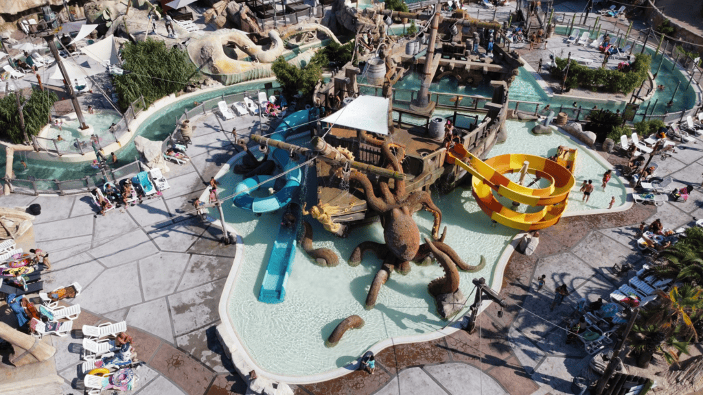 Au programme : 10 toboggans, piscine à vagues, rivière à bouées, gigantesque pataugeoire sous forme de bateau pirate à explorer, simulateur de vagues de surf… Même les plus petits pirates trouveront leur bonheur dans les pataugeoires « aqualudiques ». « Pulsez au rythme des pirates et découvrez des spectacles en journée et en soirée comme vous ne l’avez jamais vécu nulle part ailleurs », est-il décrit sur le site internet.