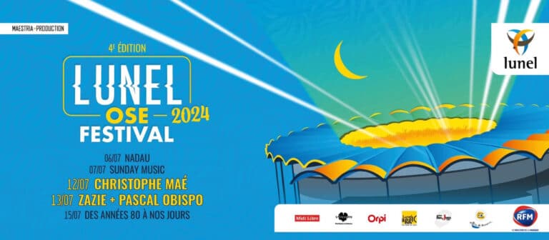 Notez que le Lunel Ose Festival 2024 débutera dès le 6 juillet avec Nadau puis le 7 juillet, aura lieu la Sunday Music. Le Festival se terminera cette année le 15 juillet avec un grand concert « Des années 80 à nos jours ».