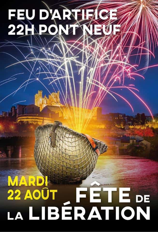 Chaque année, tous les 22 août, la ville de Béziers célèbre sa Libération de l’Occupation allemande, datant du 22 août 1944. Cette journée est placée sous le signe de la commémoration par le biais de diverses cérémonies et animations, avec notamment un feu d’artifice à la tombée de la nuit.