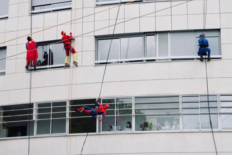 Spiderman et Superman ont été aperçu cet après-midi à l’hôpital de Montpellier ! Venus à la rencontre des enfants, les supers héros ont assuré le show sur les façades de l’hôpital Montpelliérain.