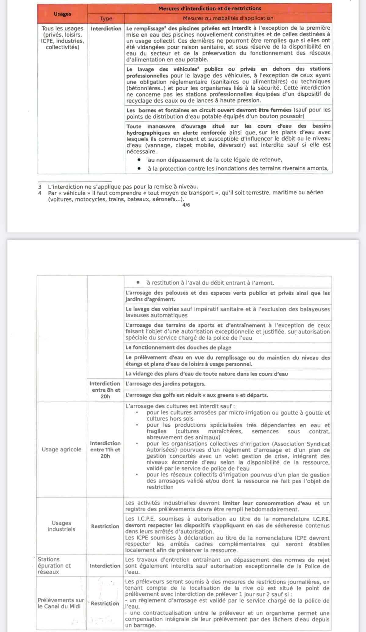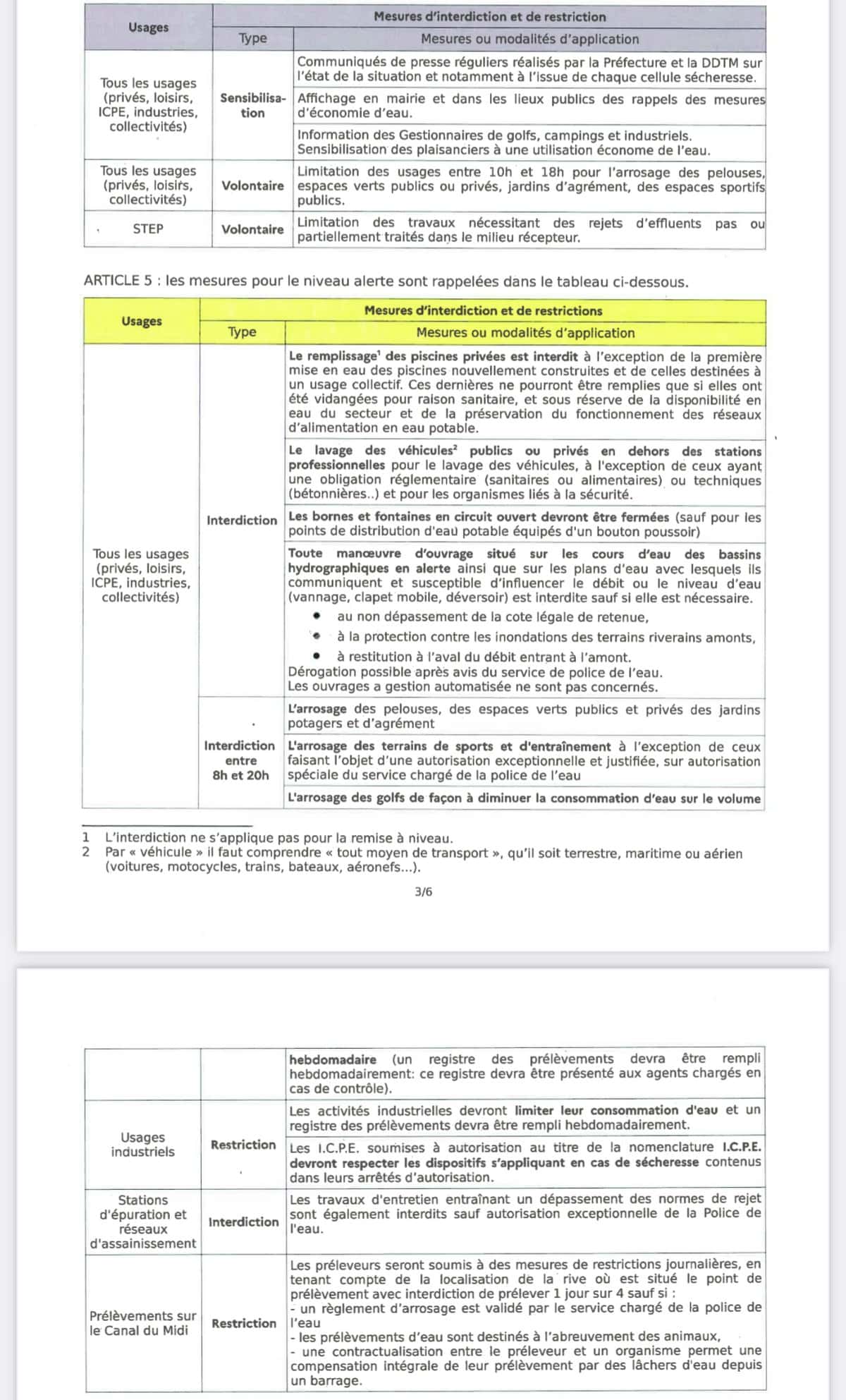 « Au regard de l’aggravation du déficit hydrologique et hydrogéologique et des prévisions météorologiques défavorables à court terme, le préfet de l’Hérault a décidé de renforcer les restrictions sur les usages de l’eau dans le département ».