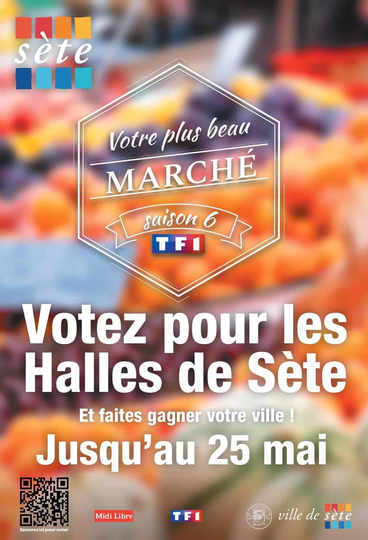 Vous pouvez soutenir votre plus beau marché en vous rendant sur le site de TF1 Info pour voter. Cliquez directement ICI pour voter gratuitement pour Les Halles de Sète en Occitanie.