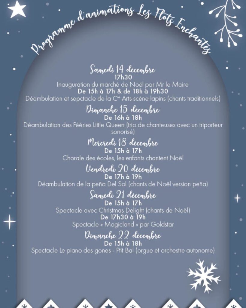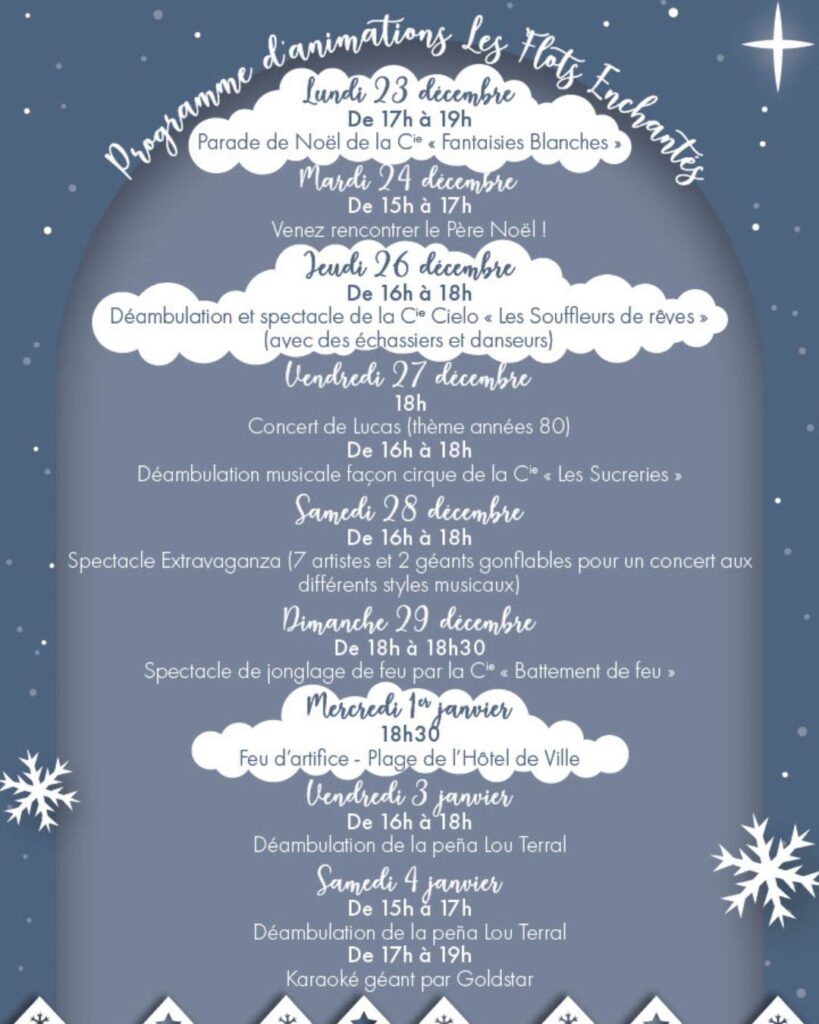 Ce qui vous attend ? Chalets de gourmandises et d’artisanat, défilés, déambulations, chants de Noël, rencontre avec le père Noël, concerts, spectacles féériques… Les dates ? Du 13 décembre au 5 janvier. Le lieu ? En front de mer sur la rive gauche. Le programme complet des animations de décembre sera prochainement dévoilé. Un feu d’artifice sera par ailleurs tiré dans une commune voisine, La Grande-Motte. En attendant, voici en images quelques animations à Palavas-les-Flots :