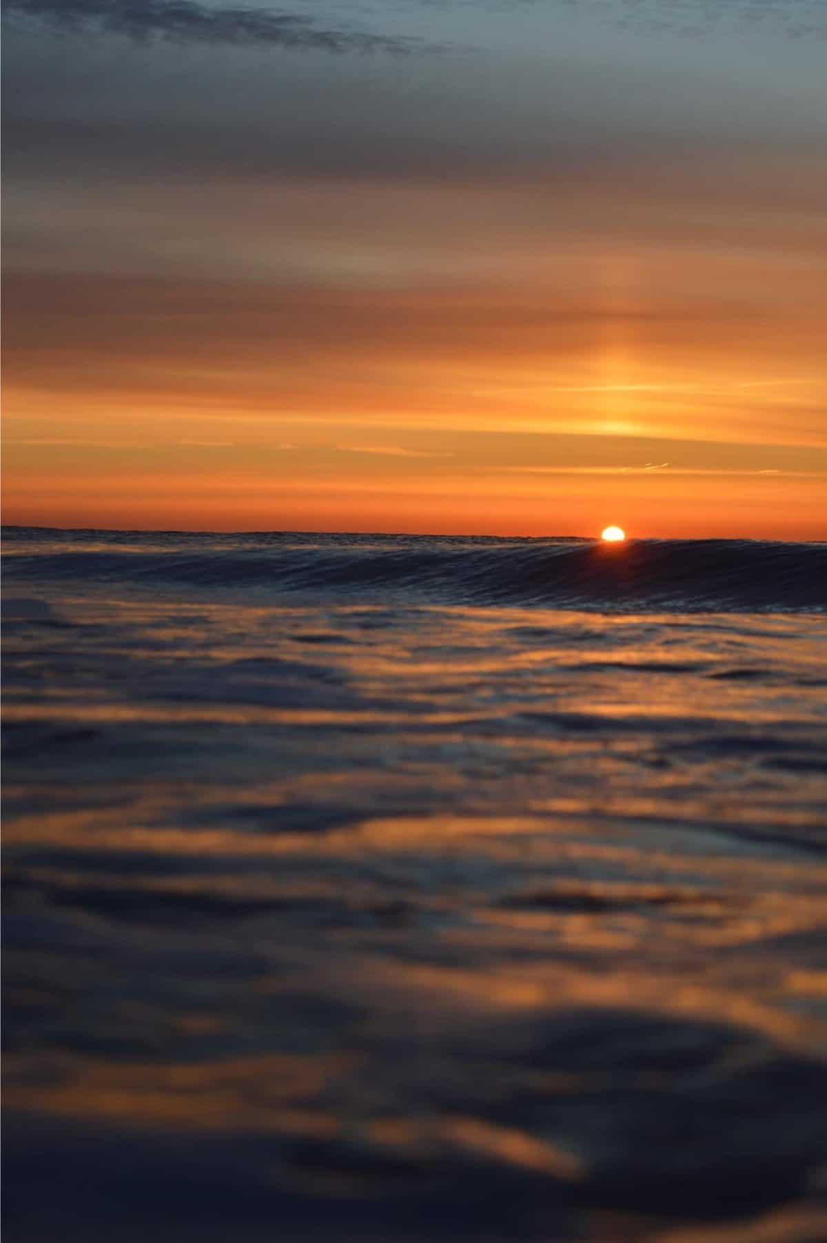 On y voit le soleil se lever avec de superbes reflets sur la mer, entre deux vagues. Le tout dans un ciel orangé, voilé en altitude. Voici les photos de Niko Las ce jeudi 6 avril 2023.
