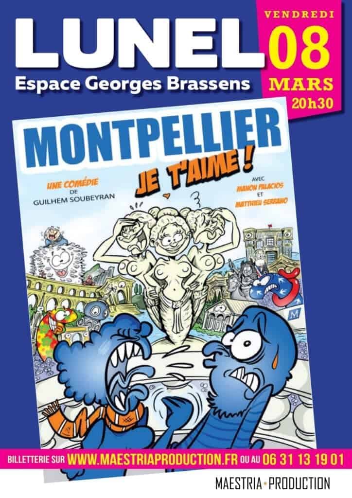 Le 8 mars, à partir de 20h30, la représentation de la comédie « Montpellier, je t’aime », écrite par Guilhem Soubeyran, se déroulera à l’Espace Georges Brassens, à Lunel. Une soirée placée sous le signe du rire et de la bonne humeur, proposée par Maestria Production.