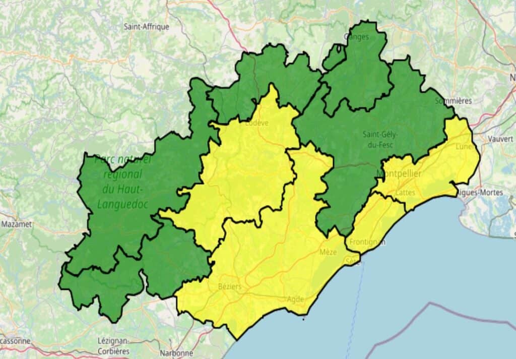 Ce jeudi 16 juin, la préfecture de l’Hérault informe de 4 secteurs en risque incendie « modéré ». Cela signifie que l’accès sont autorisés, les travaux autorisés avec un dispositif de prévention et d’extinction approprié sous la responsabilité du chef de chantier. Cette carte (en fin d’article) est mise à jour quotidiennement et diffusée sur les réseaux sociaux de la préfecture (@prefet34) à 18h.